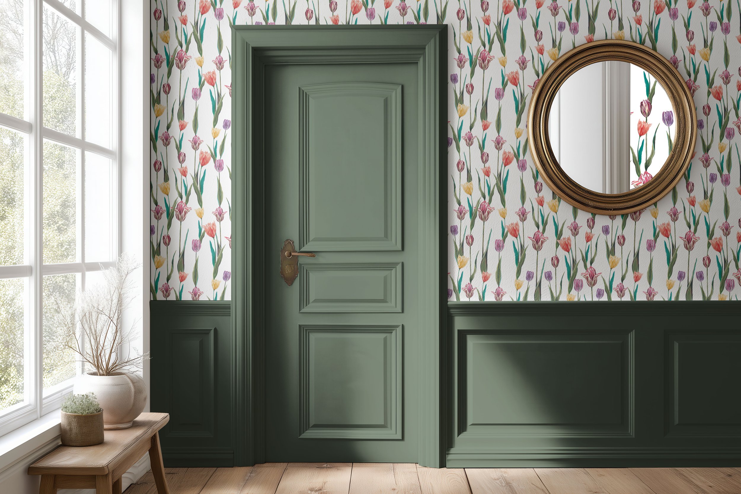 green olive flower mid century modern wallpaper